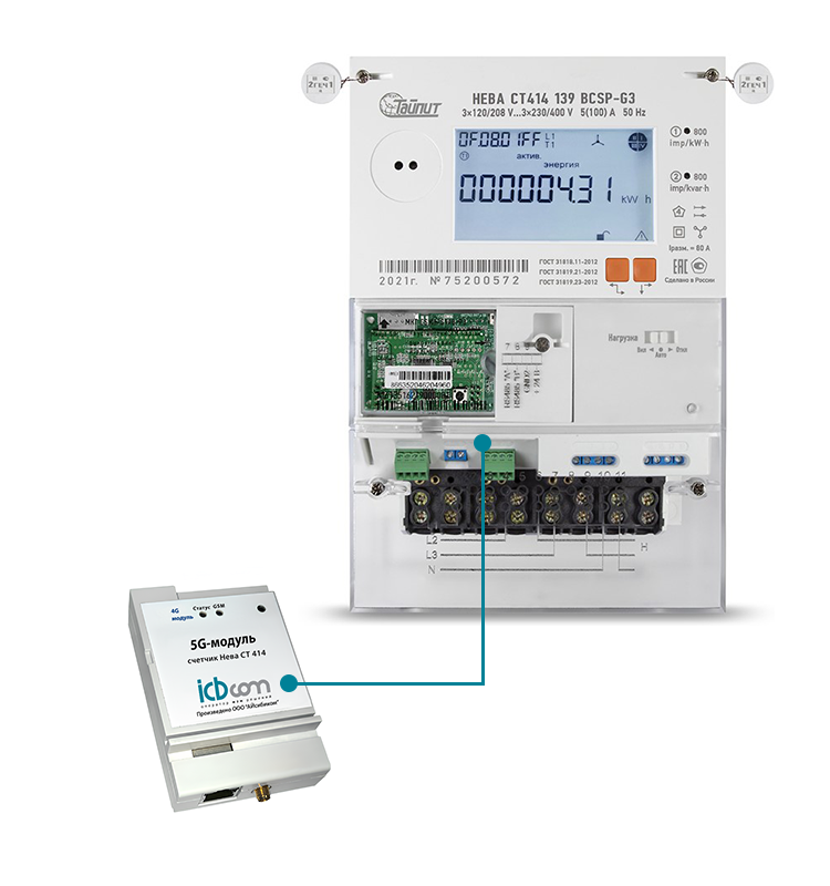 Контроллер передаёт данные со счётчика на сервер по сотовой сети 5G. Для работы модуля потребуется SIM-карта. Абонентская плата за услуги связи взимается мобильными операторами.